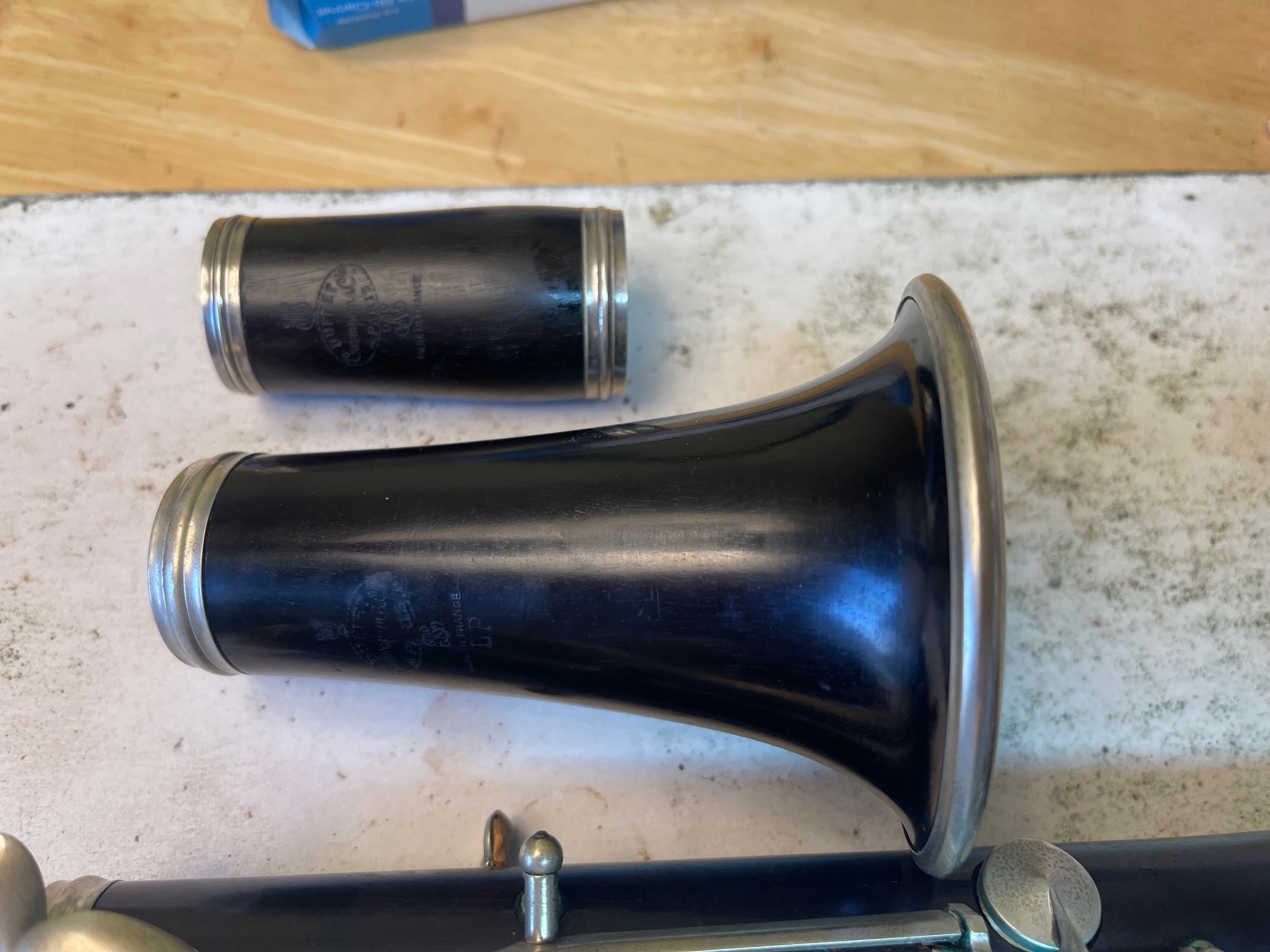 Both the bell and the upper joint are stamped "LP". The previous owner told me he contacted Buffet (years ago) and they told him the clarinet was made around 1911 and the LP was probably stamped by the importer to indicate 440 Hz pitch.