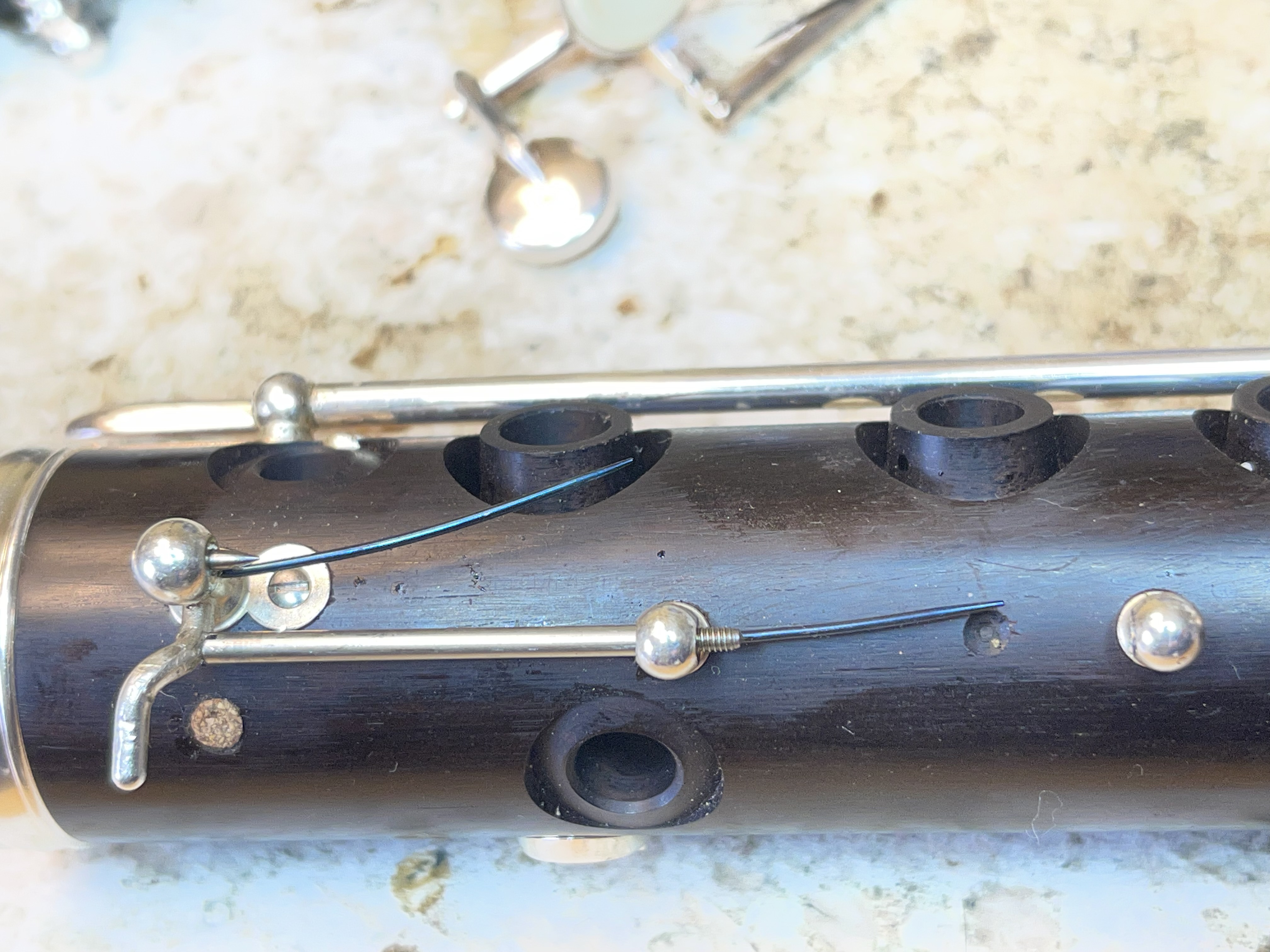 I am working on a Tosca in A. Taking lower joint sliver key (B/F#) out was difficult.